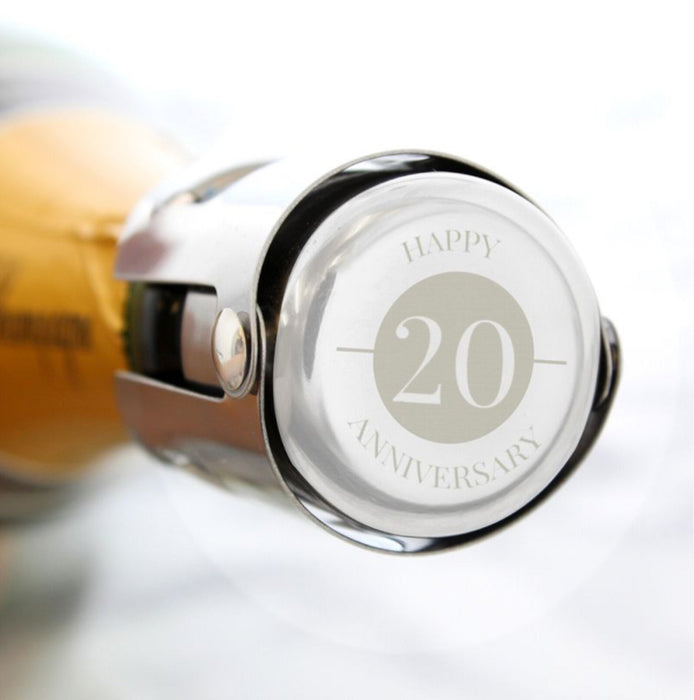 Our 20th Anniversary Stainless Steel Bottle Stopper ensures the airtight closure of champagne bottles and wine bottles that use corks.