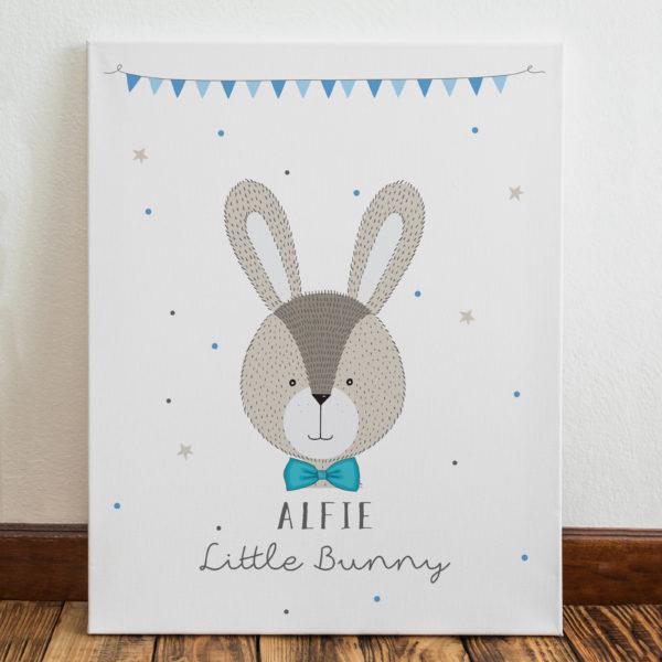 This adorable little bunny 40cm x 30cm canvas can be personalised with a name of up to 15 characters.
