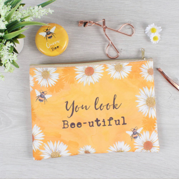 This stunning makeup bag serves as a daily reminder that 'You are Bee-utiful'.