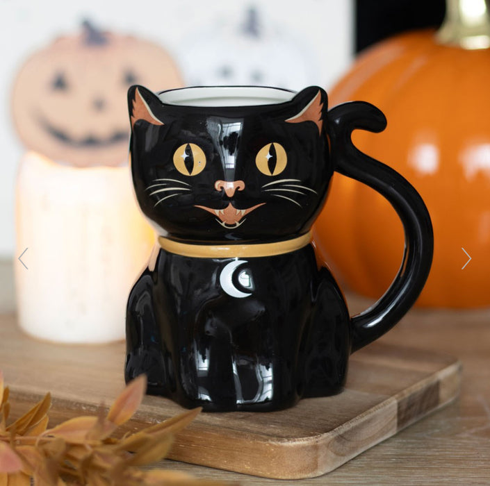 Halloween Spooky Black Cat Shaped Mug
