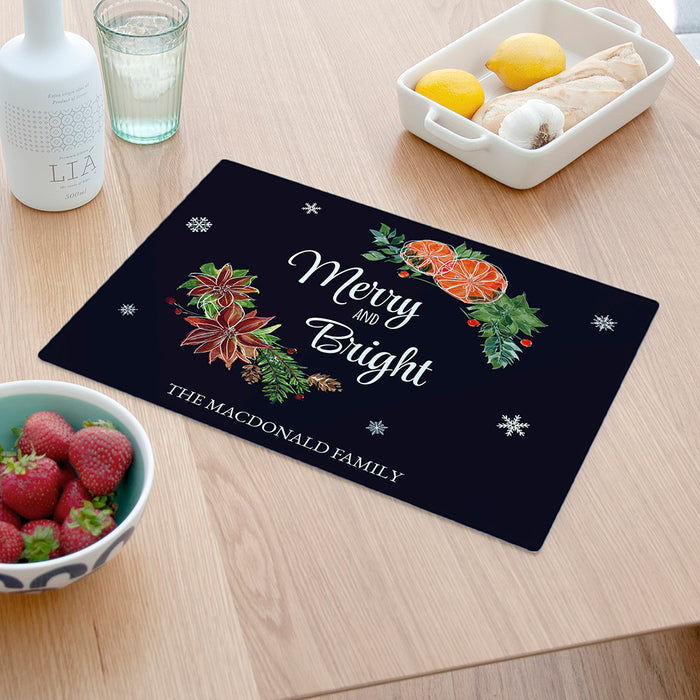 Personalised Christmas Merry & Bright Rectangular Glass Chopping Board