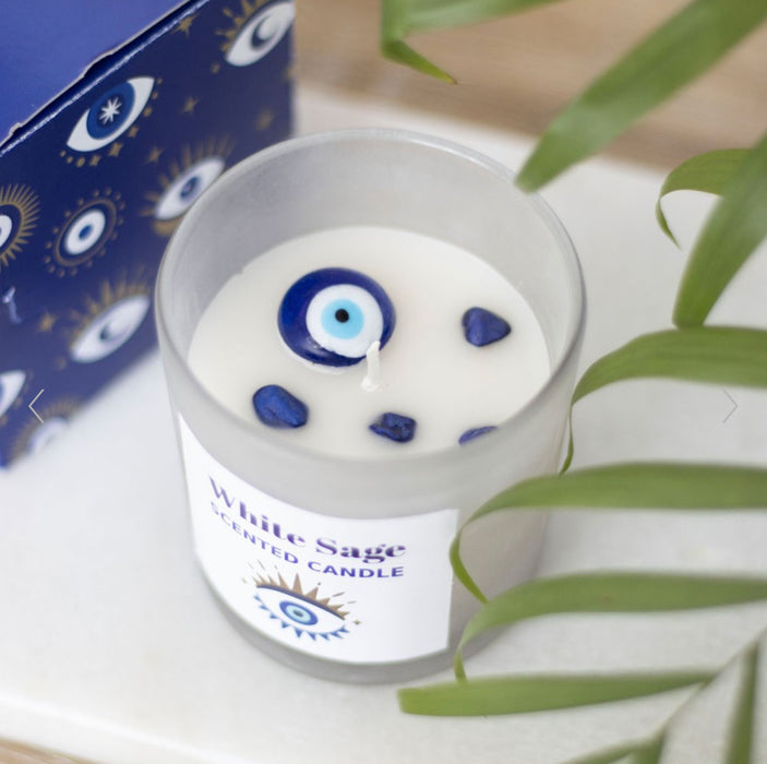 All Seeing Eye White Sage Crystal Chip Spiritual Protection Candle