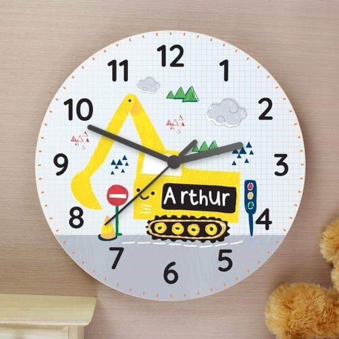 Our Personalised Digger Wooden Clock will look fantastic hung in a bedroom or nursery!