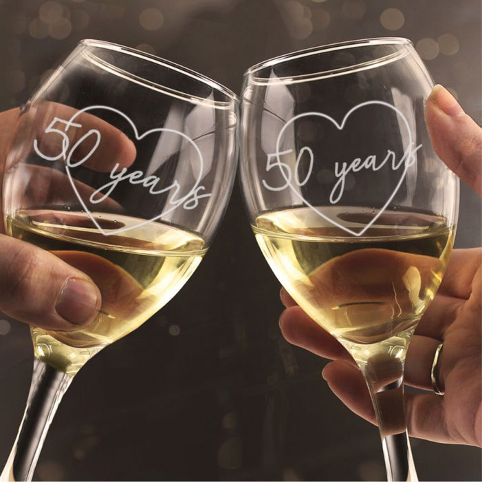 Celebrate a 50th Golden Wedding Anniversarywith these 50 Years Heart Wine Glasses