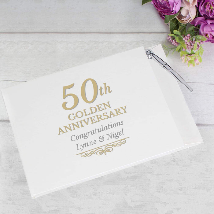 Personalised 50th Golden Anniversary Hardback Guest Book & Pen