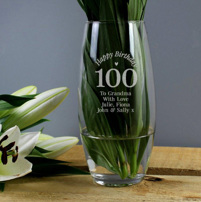 Our Happy 100th Birthday Bullet Vase is an elegant and stylish personalised gift that is perfect for 100th Birthday.