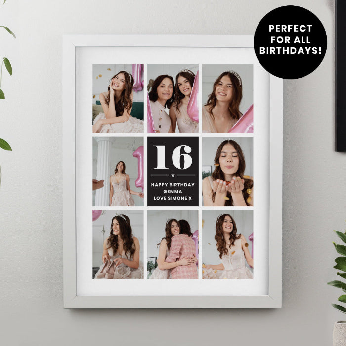 Celebrate a 16th Birthday with our Personalised Birthday Multi Photo Upload Poster Frame