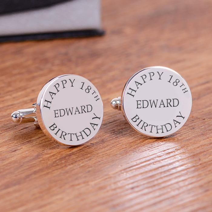Engraved Happy 18th Birthday Cufflinks - Silver Finish