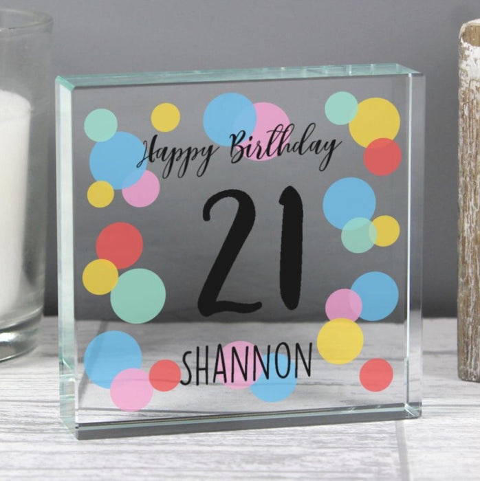Personalised 21st Birthday Confetti Crystal Glass Block