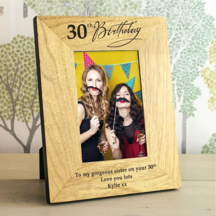 The top is engraved with "30th Birthday" and the bottom of the frame is left free for your own personalised message.