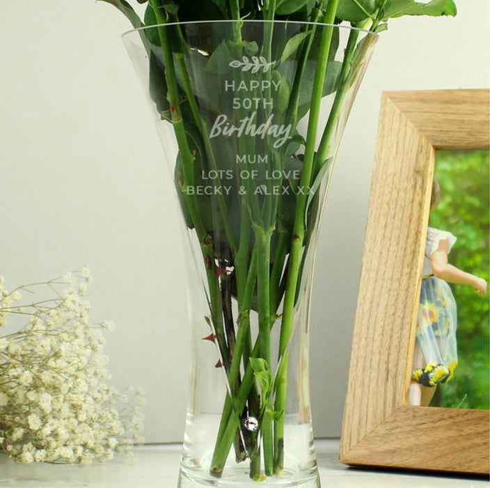 Personalise this 50th Birthday Hand Cut Large Diamante Vase with a message,