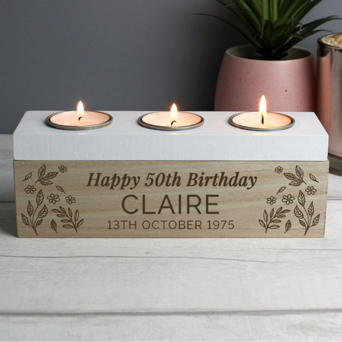 Personalised 50th Birthday Floral Triple Tea Light Box