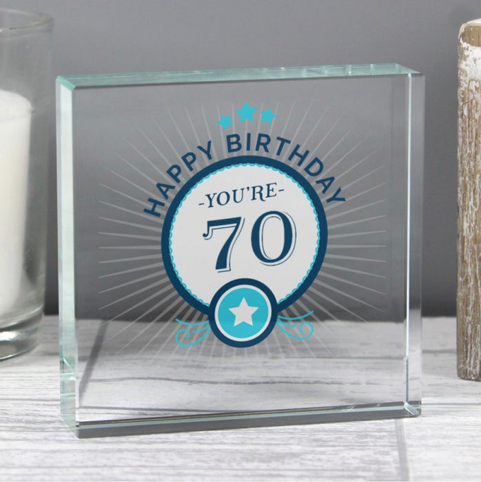 The glass keepsake is presented in a gift box and makes a unique and special gift idea for someone on their 70th Birthday