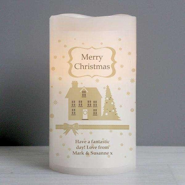 Personalised Festive Village Christmas LED Candle