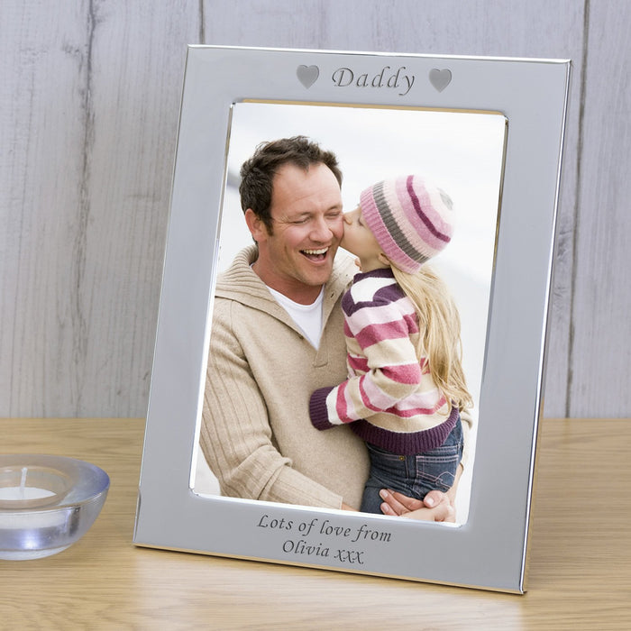 High quality silver plated frame.The top reads "DADDY". The bottom is left free for your own personalised message.