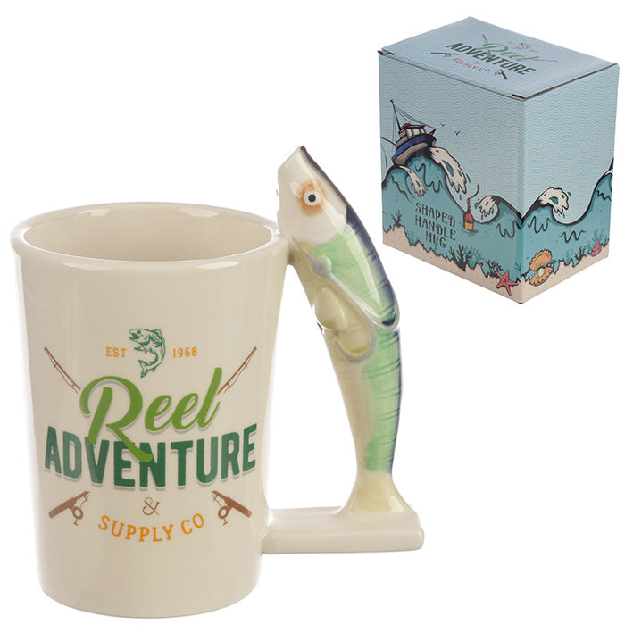 Reel Adventure Fishing Shaped Handle Mug with Fish and Hook