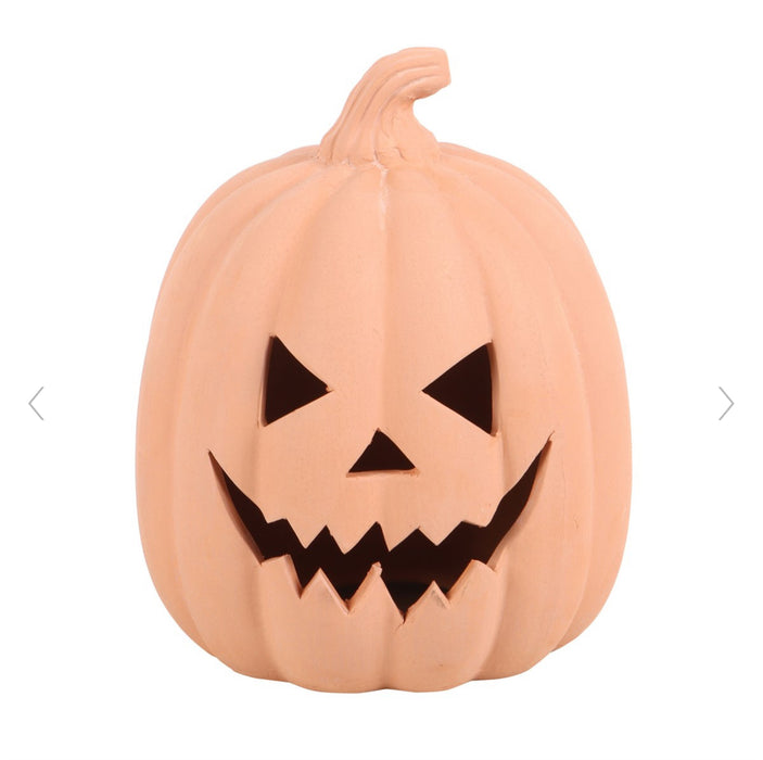 Our 15cm terracotta pumpkin halloween decoration, designed to eliminate the mess and stress of traditional pumpkin carving. This durable and charming piece can be displayed year after year, making it a sustainable choice for your seasonal decor. Perfect for adorning doorsteps and porches, it creates an inviting yet eerie atmosphere for trick-or-treaters, or use it indoors to enhance your spooky style. Elevate your Halloween experience with this timeless decoration that combines practicality with festive flair.