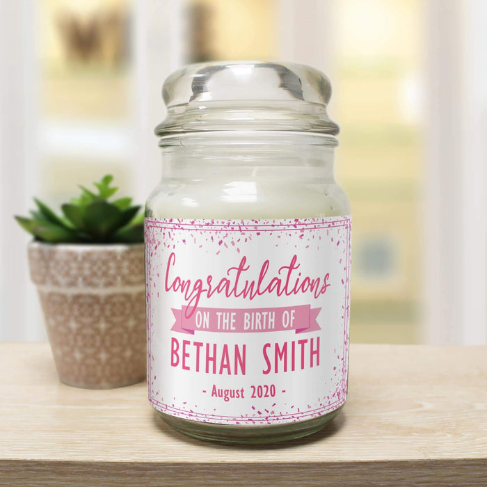 Personalised Congratulations on the Birth Candle Jar - Pink