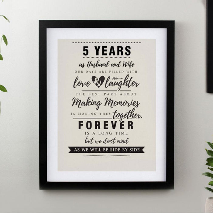 This Anniversary Framed Print makes a perfect 5th Anniversary present.