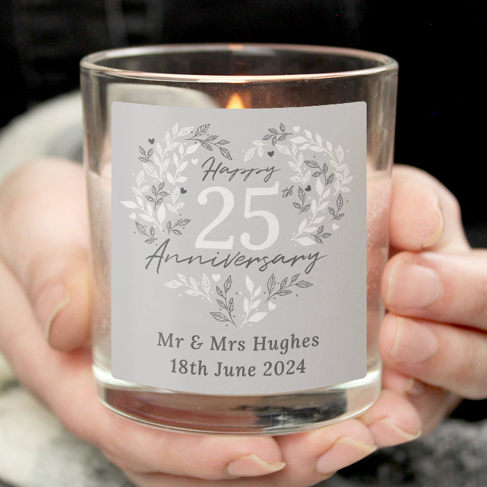 Personalised 25th Silver Wedding Anniversary Candle Jar
