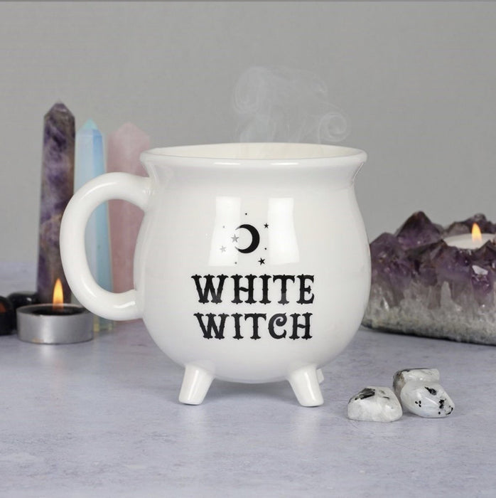 Add a magical flair to your favorite drink with our White Witch Cauldron Mug. With its stunning white finish, this one-of-a-kind mug not only brings a bit of enchantment to your kitchen but also showcases the playful phrase 'White Witch' to spark your daily rituals.