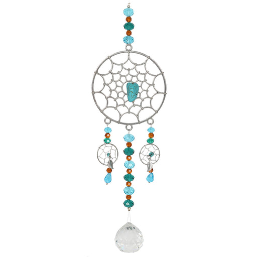 This hanging dreamcatcher is decorated with blue, green and brown glass beads and would look beautiful hanging in a window, allowing the colours to...