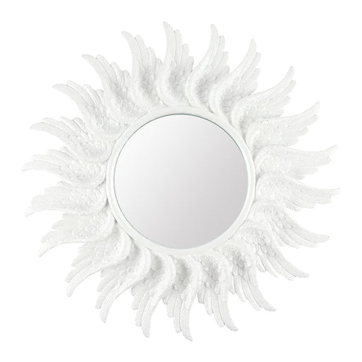 A beautiful and unique walll mirror encircled by a halo of angel wings. Features a stunning white finish accented with glitter whiches gives a spar...