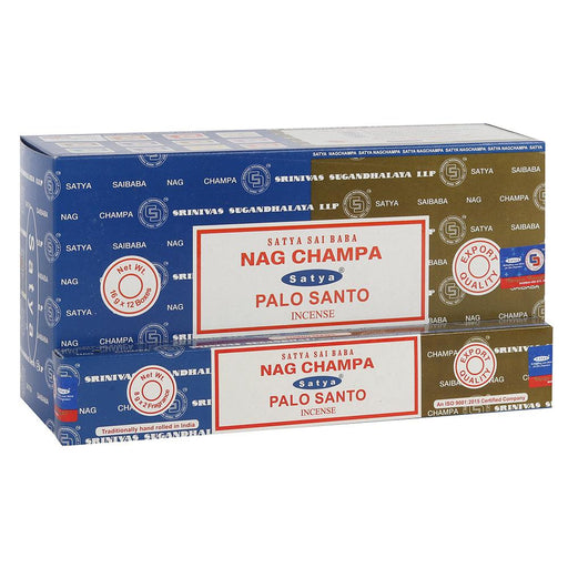 View full details12 Pack of Combo Satya Incense - Nag Champa Palo Santo