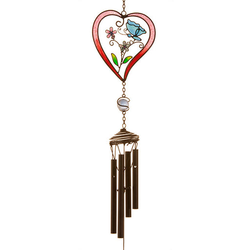 A beautiful hand crafted metal, glass & resin windchime in a red heart design.Ethically sourced. Suitable for indoor and outdoor display. Pac...