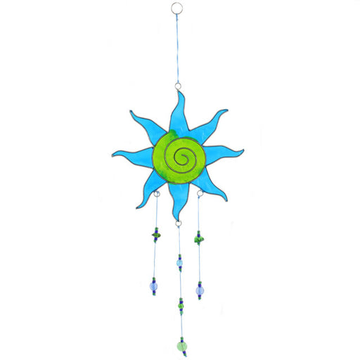A bright green and blue coloured suncatcher with pretty glass hanging beads in a sun design. Suitable for display in and outdoors. Hang in a sunny ...