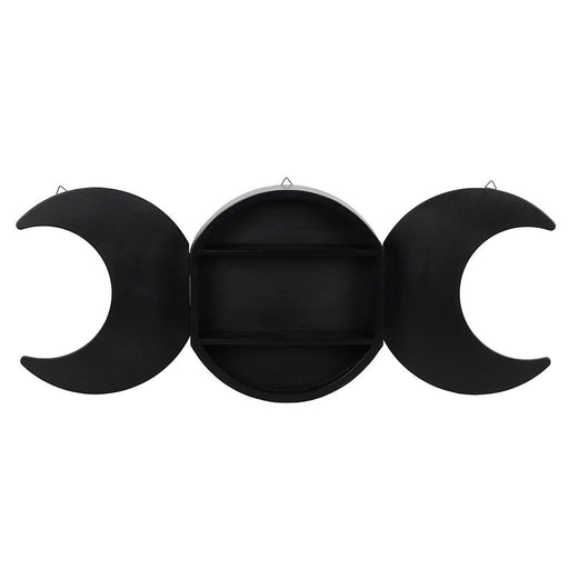 This black triple moon shelving display has the central moon as the storage area with two crescents either side which open out for display. A fanta...