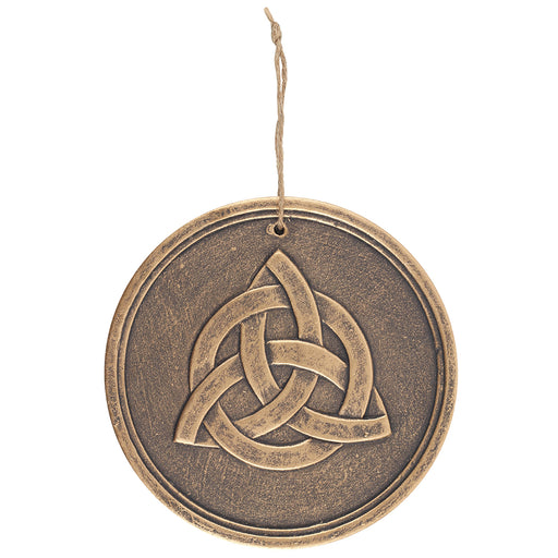 A stunning terracotta wall plaque with a silver-like effect and striking triquetra design. Also known as a trinity knot, this symbol is commonly us...