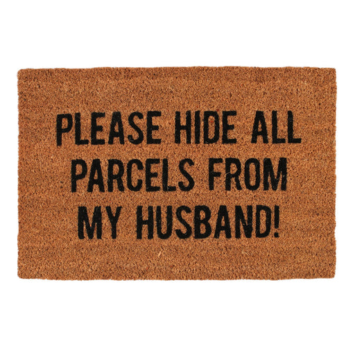 Welcome people into your home with this fun natural doormat. Hide all parcels design.