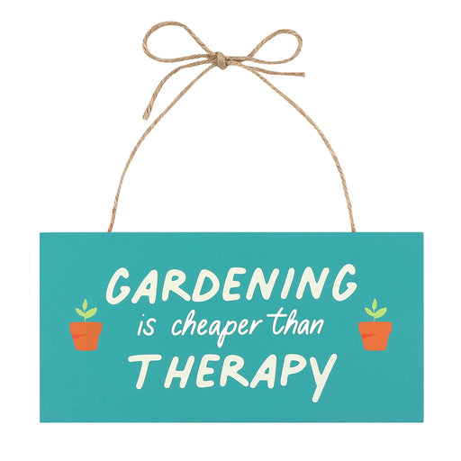 A fun decorative sign for the greenhouse, garden or shed which reads 'Gardening is cheaper than therapy'.