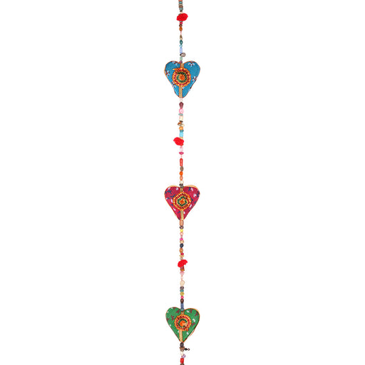 Beautiful brightly coloured hanging string of hearts. Each string is also decorated with coloured beads, pom poms and finished will a bell for a un...