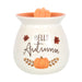 Welcome the colder season with this Hello Autumn Wax Melt Burner Gift Set. A ceramic burner featuring 'Hello Autumn' text and a shaped, Caramel Pumpkin soy wax melt packaged in a beautiful matching gift box. The perfect cosy gift for a special someone elebrating an autumn birthday.
