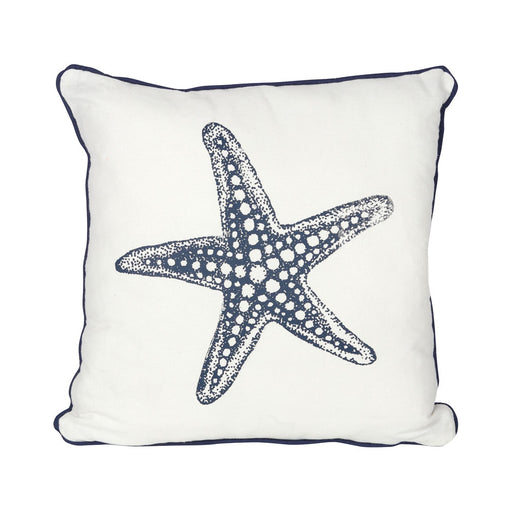 Freshen up your home décor with this gorgeous white cushion featuring a dark blue starfish illustration. A great nautical accent piece for a bedroo...