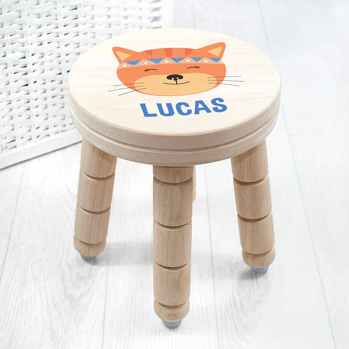 Personalised Cute Kitten Kids Wooden Stool
