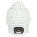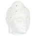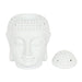 A large white ceramic Buddha head oil burner. This item can also be used as a wax melt burner however it is advisable to consider the size and depth of the bowl when adding wax to ensure it will not overrun the edges when melted.