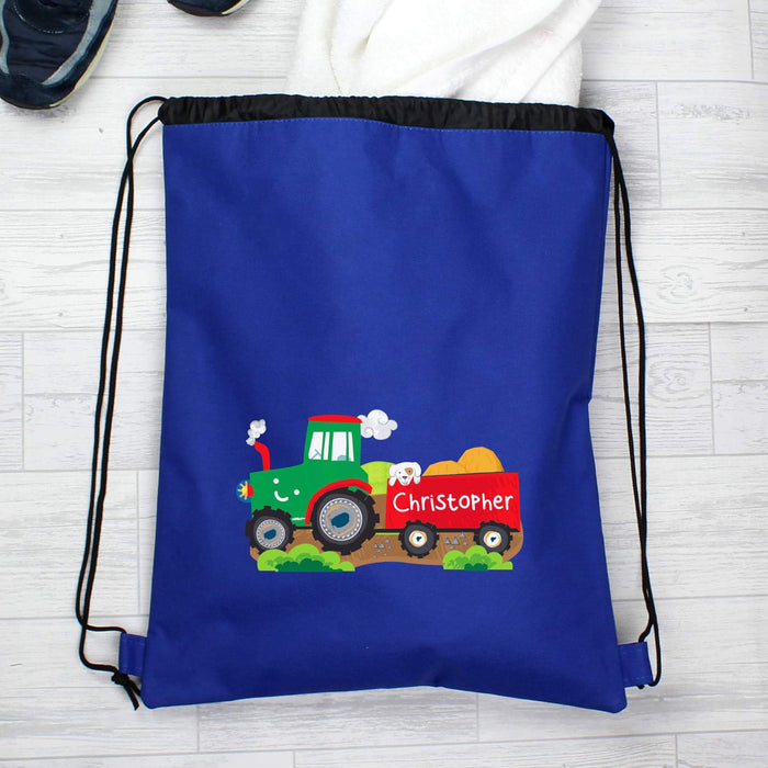 Our Personalised Tractor Kit Bag is prefect for a tractor mad boy that loves to swim!