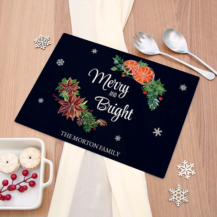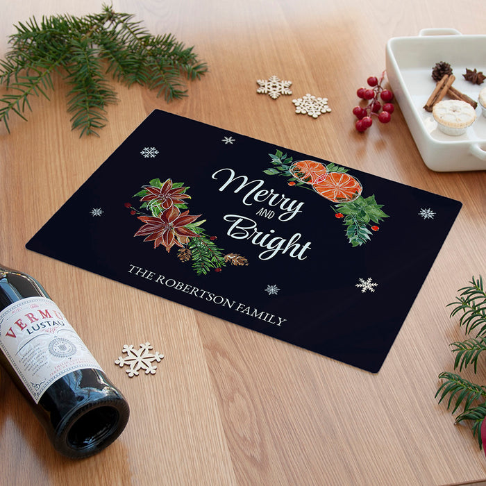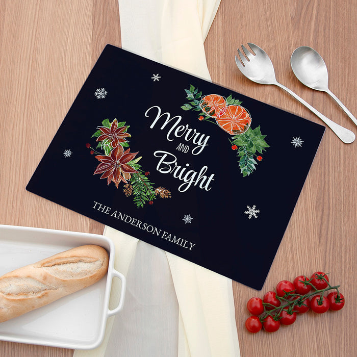 Personalised Christmas Merry & Bright Rectangular Glass Chopping Board