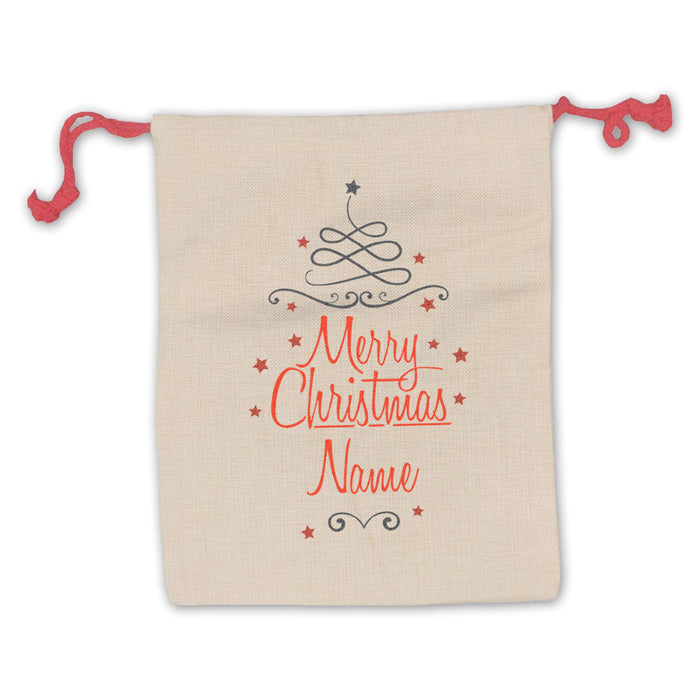 Personalised Christmas Presents Sack with Merry Christmas Design, Personalise with Any Name