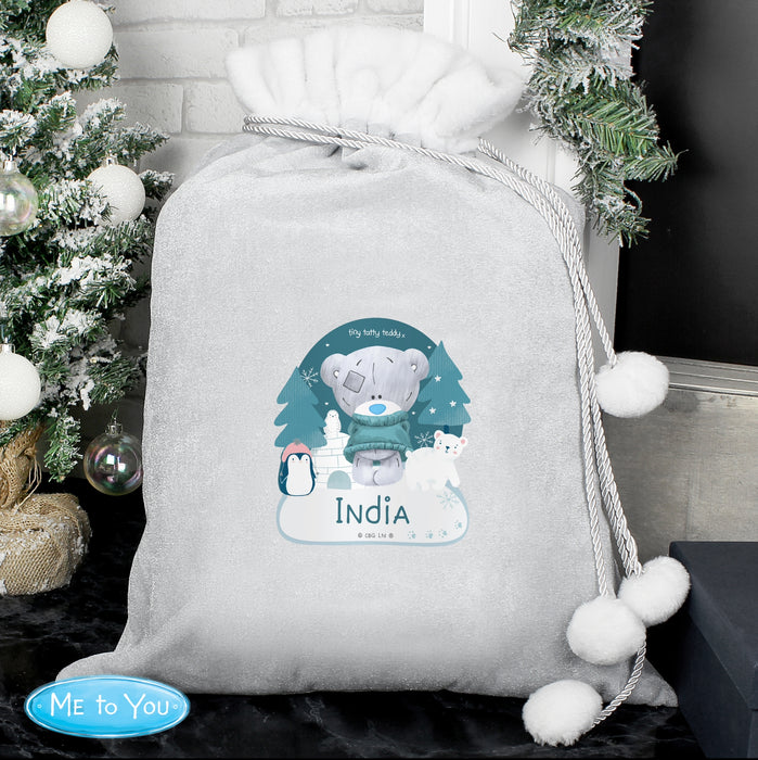 Personalised Winter Explorer Tiny Tatty Teddy Luxury Silver Grey Christmas Sack