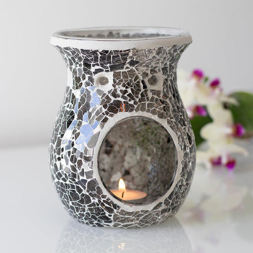 Small Silver Crackle Glass Oil Burner