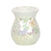 This small oil burner features a stunning iridescent white mirrored crackle effect. May also be used as a wax melt burner.