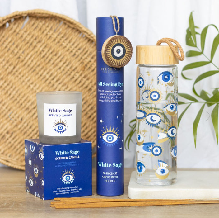 All Seeing Eye White Sage Crystal Chip Spiritual Protection Candle