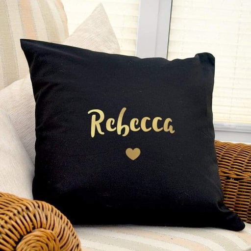View full detailsPersonalised Gold Name Heart Black Cushion Cover