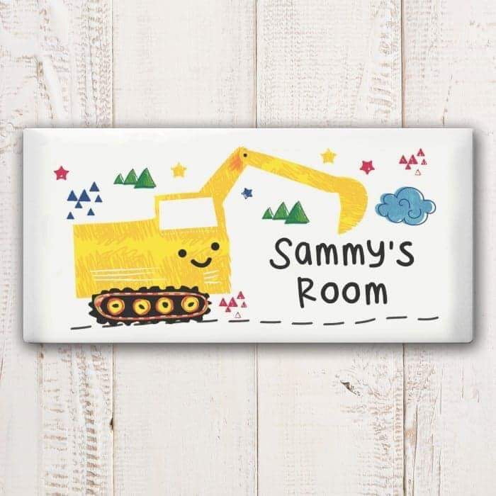 This Personalised Digger Door Plaque is a perfect way to decorate a child's bedroom door!