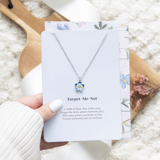 This delicate necklace features a pretty blue forget-me-knot flower, presented on a matching greeting card, making it perfect for gifting. Whether ...