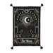 Create a statement with this tarot inspired tapestry depicting a design reflecting 'The Moon' card. Metallic gold and white ensure the design stands out and tassel corner details give this piece a premium feel.